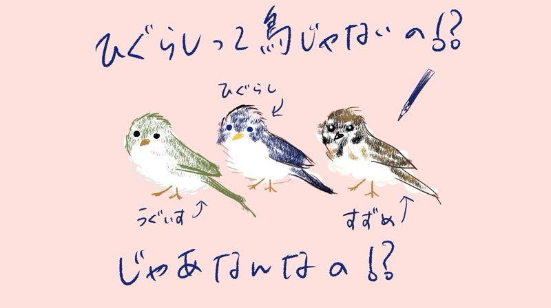 別の日に、旦那が「この辺ってヒグラシが鳴き出すのが早いと思う」と言うので、私はやっと興味を持ち、「ねえ、ヒグラシってなに?」と聞いてみた。頭の中では、まぁウグイスかスズメの仲間だなと想像して。